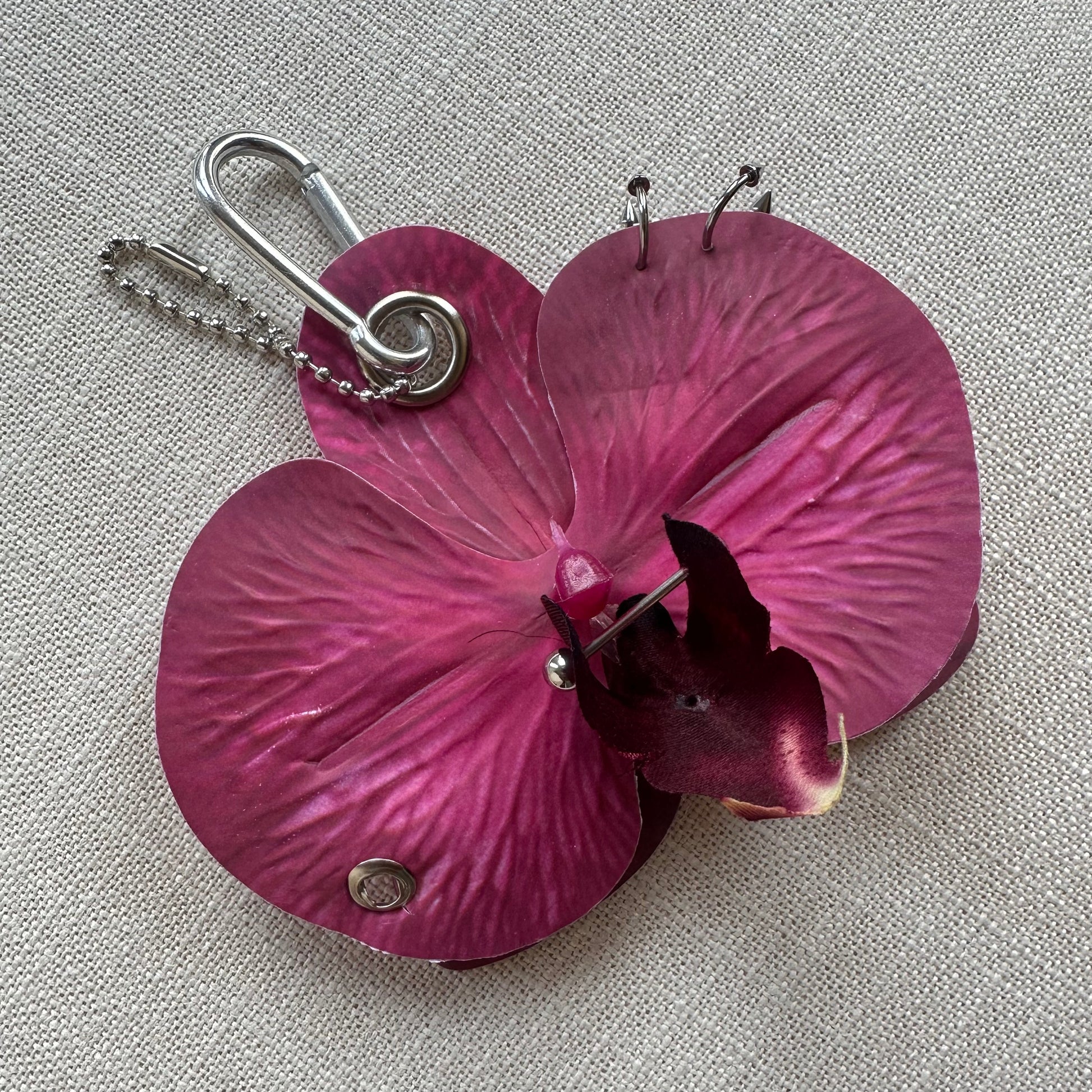 Pierced Orchid Bag Charm - Dark Fuchsia