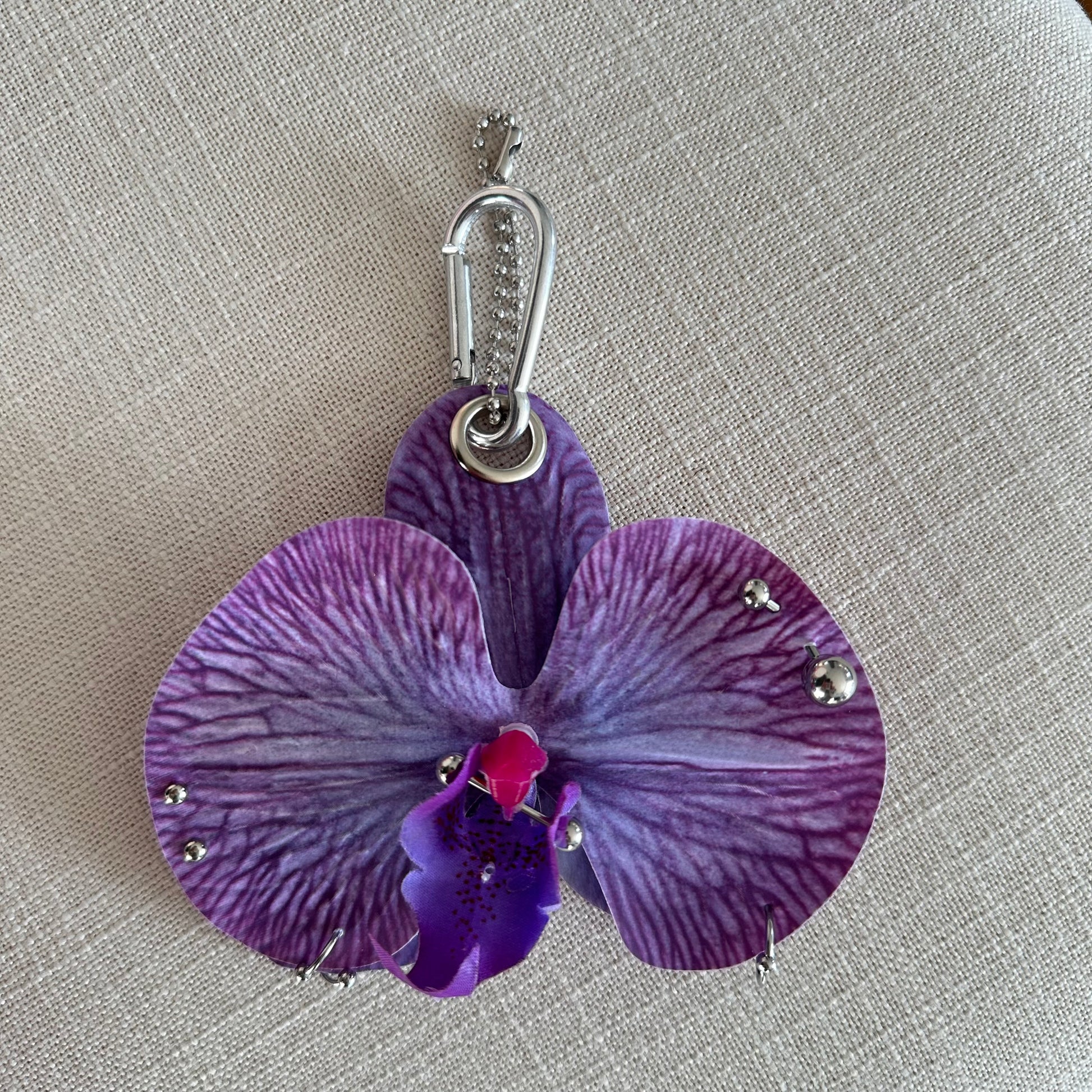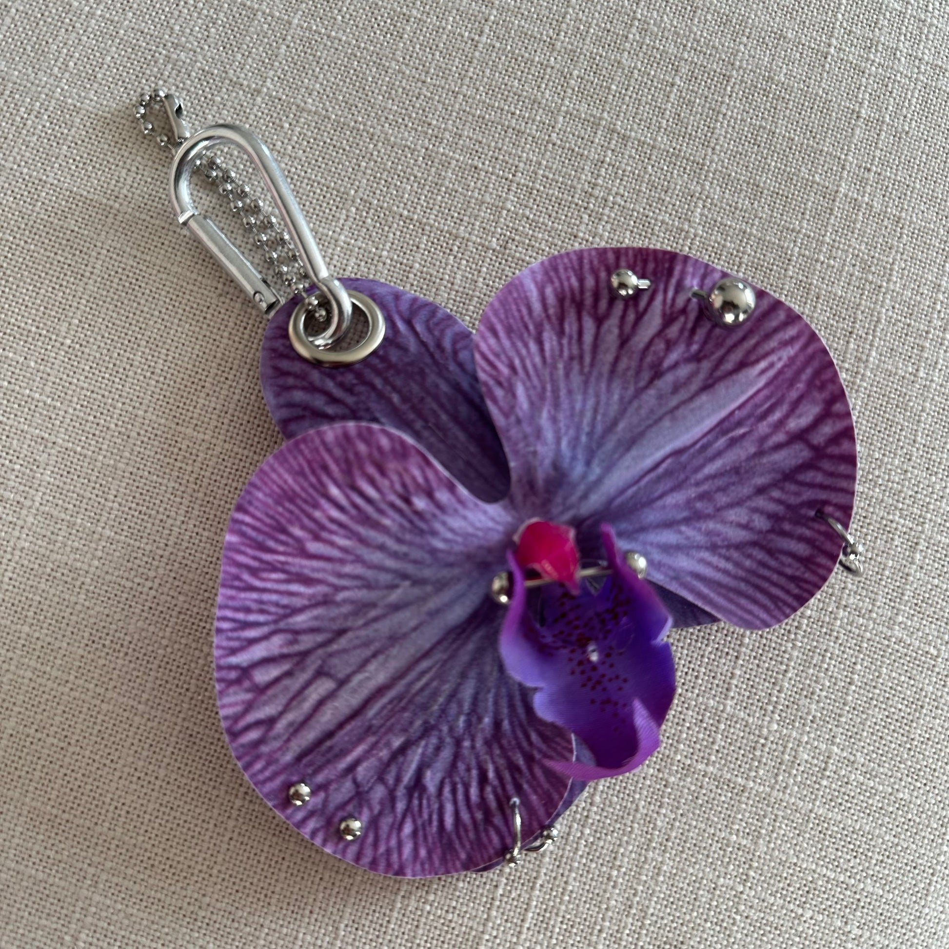 Pierced Orchid Bag Charm - Dark Purple & Pink