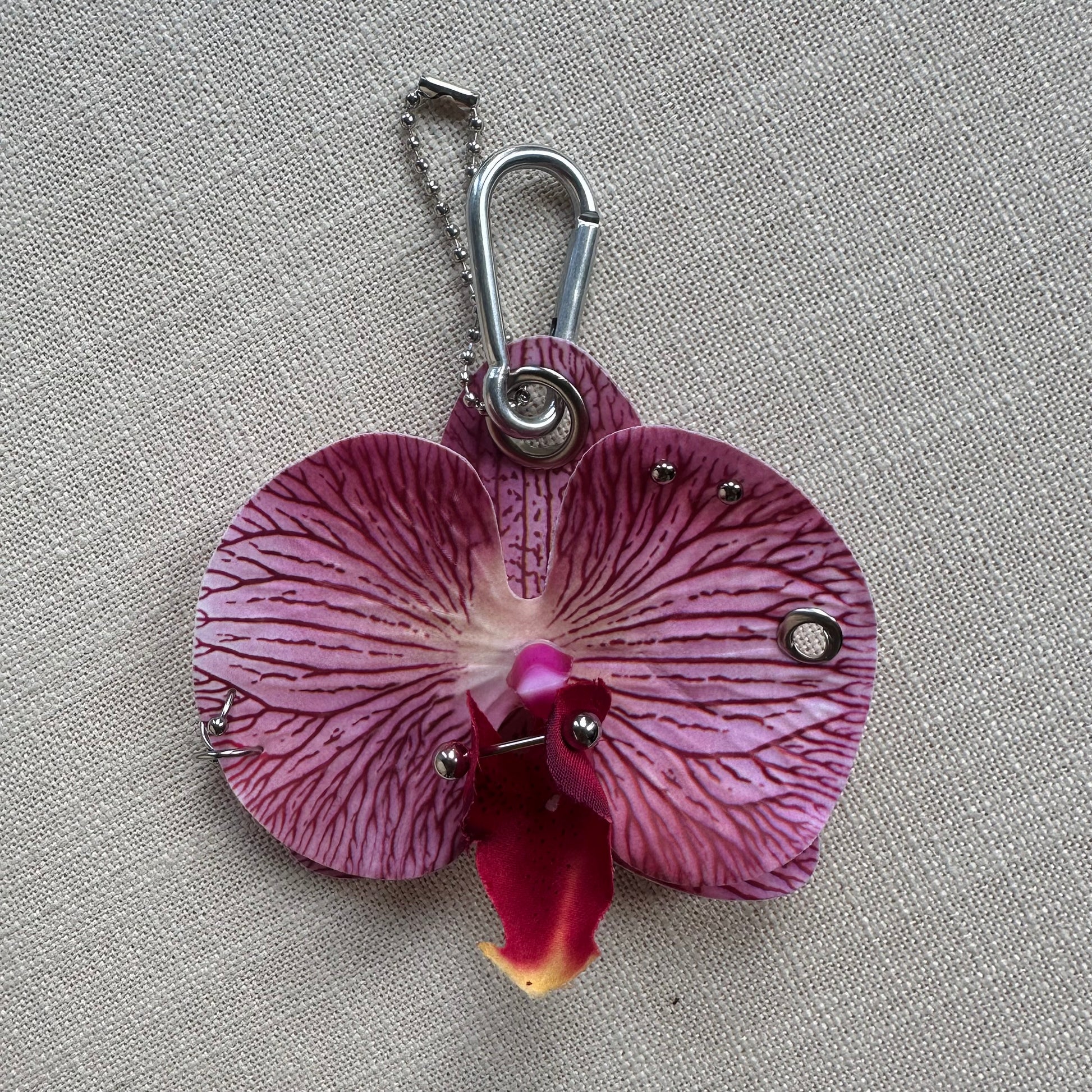 Pierced Orchid Bag Charm - Fuchsia & Yellow
