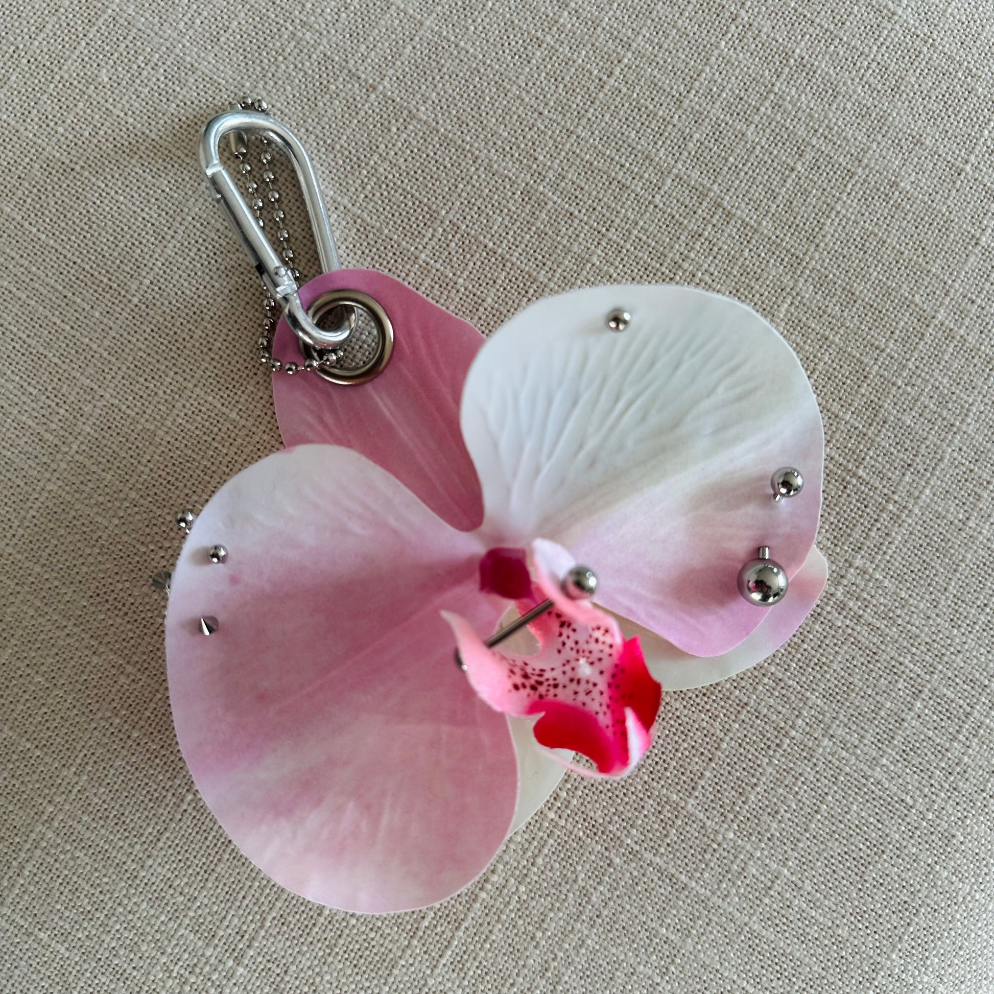 Pierced Orchid Bag Charm - Pink & White